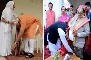 इसी तरह, प्रधानमंत्री नरेंद्र मोदी ने कई अवसरों पर अपनी माँ हीराबेन के चरण स्पर्श करते हुए तस्वीरें साझा कीं। साधारण परिवेश में पली-बढ़ी हीराबेन का जीवन सादगी और त्याग का प्रतीक रहा। मोदी स्वयं कई बार कह चुके हैं कि उनकी माँ ने कठिन परिस्थितियों में भी उन्हें ईमानदारी, अनुशासन और परिश्रम का पाठ पढ़ाया।